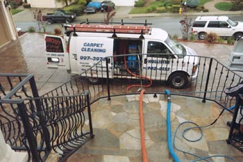 We will steam clean your carpet with our truck-mounted hot-water extraction process. Your carpets will be cleaned down to the backing and will also remove deep down bacteria, pollens, and chemicals.